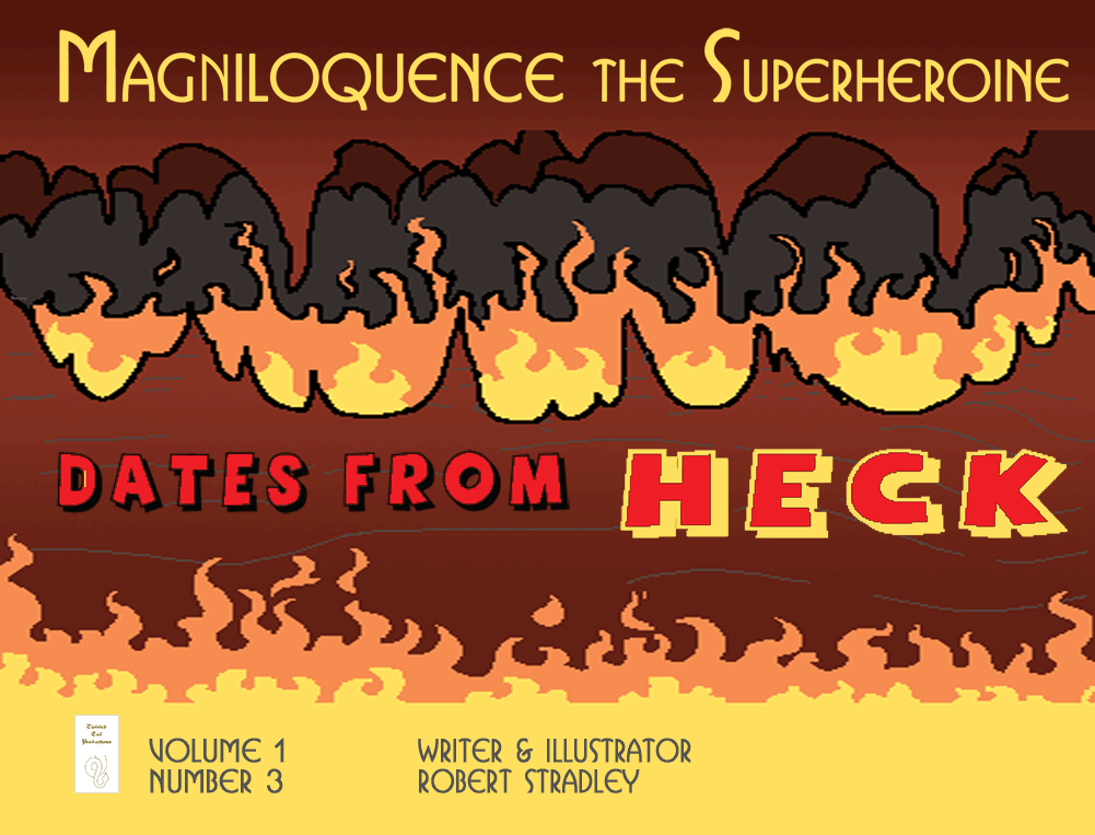 © 2013-2020. Magniloquence TM the Superheroine is written and illustrated by Robert Stradley, Characters and elements of Magniloquence are TM and © 2013-2020 Robert Stradley. All rights reserved. Graphic novels are published by Twisted Tail Productions PO box 9778 Wichita Falls, Texas, USA 76308. All names, characters, places, and events are fictitious and are meant to be treated as such. Any resemblance to actual persons past, present, or future is entirely coincidental. Any tongue-in-cheek reference to existing comics is purely intentional and readers are encouraged to ferret them out. If you cannot find any, you need to read more comics. If you can read this, you probably don't need new glasses.