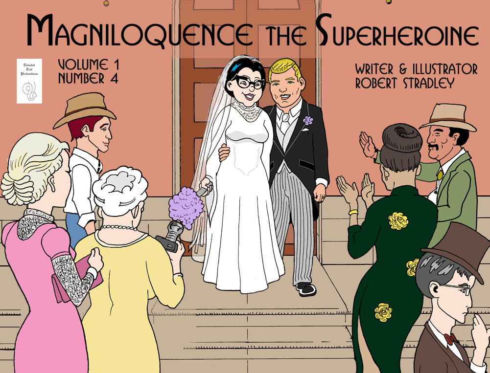 © 2013-2020. Magniloquence TM the Superheroine is written and illustrated by Robert Stradley, Characters and elements of Magniloquence are TM and © 2013-2020 Robert Stradley. All rights reserved. Graphic novels are published by Twisted Tail Productions PO box 9778 Wichita Falls, Texas, USA 76308. All names, characters, places, and events are fictitious and are meant to be treated as such. Any resemblance to actual persons past, present, or future is entirely coincidental. Any tongue-in-cheek reference to existing comics is purely intentional and readers are encouraged to ferret them out. If you cannot find any, you need to read more comics. If you can read this, you probably don't need new glasses.