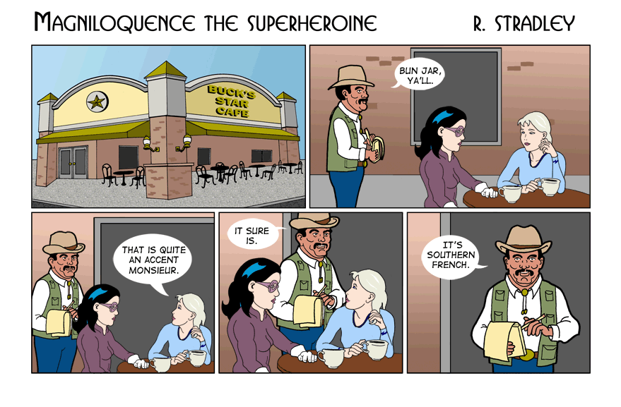 © 2013-2020. Magniloquence TM the Superheroine is written and illustrated by Robert Stradley, Characters and elements of Magniloquence are TM and © 2013-2020 Robert Stradley. All rights reserved. Graphic novels are published by Twisted Tail Productions PO box 9778 Wichita Falls, Texas, USA 76308. All names, characters, places, and events are fictitious and are meant to be treated as such. Any resemblance to actual persons past, present, or future is entirely coincidental. Any tongue-in-cheek reference to existing comics is purely intentional and readers are encouraged to ferret them out. If you cannot find any, you need to read more comics. If you can read this, you probably don't need new glasses.