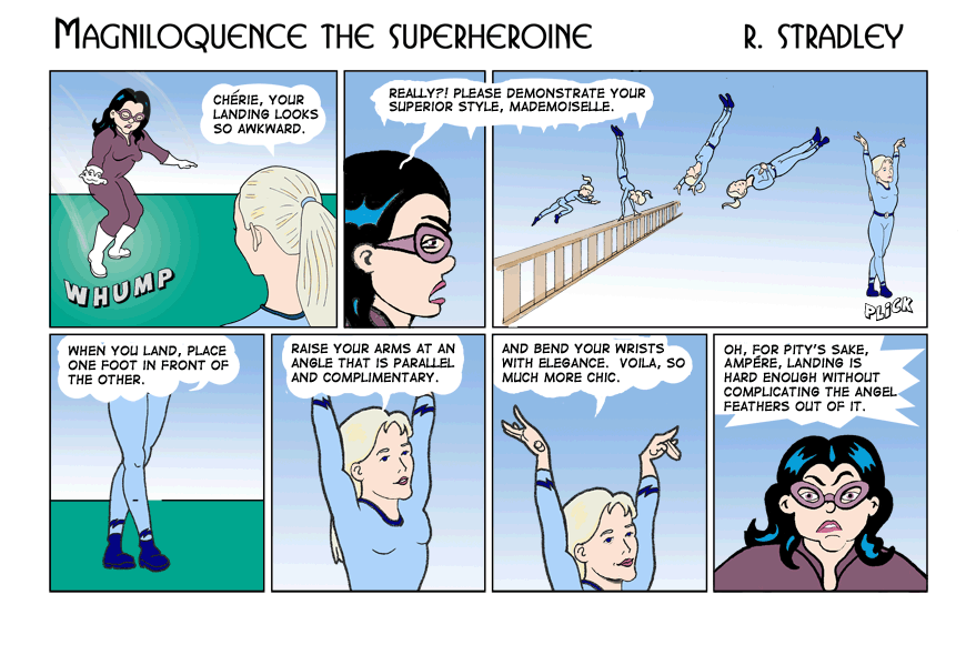 Ampére demonstrates how to look chic when landing. . -- Robert Stradley, the Weekend Artist. |
