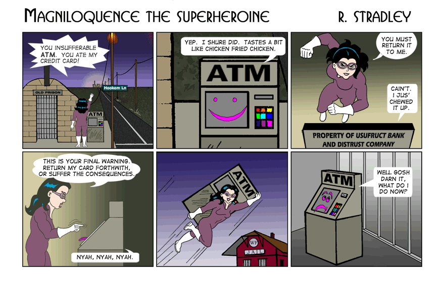 | What will happen next? Will Magniloquence find an angelic ATM to replace it with? What happens to the evil one? LMS 02Mar15 |