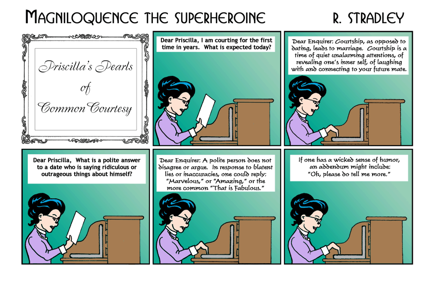 Priscilla responds to reader questions about courting and dating. -- Robert Stradley, the Weekend Artist. |