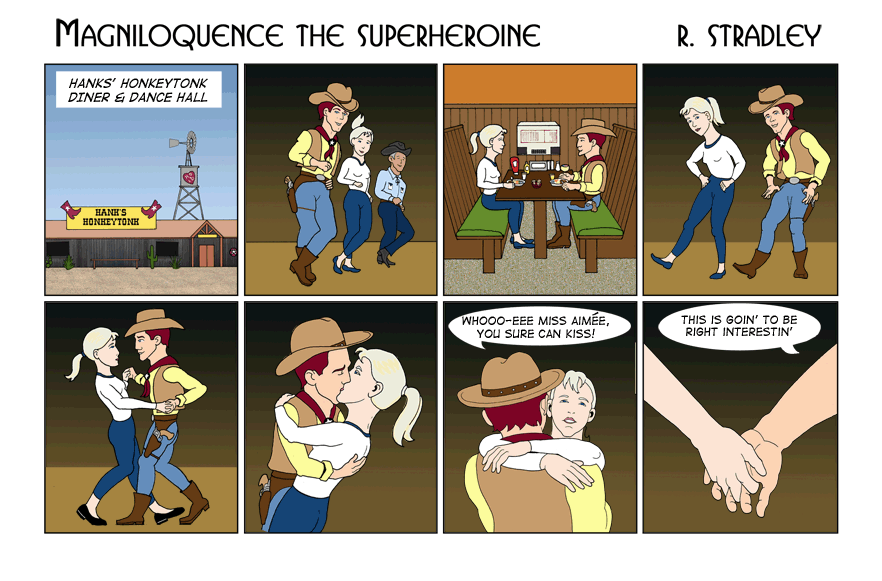 © 2013-2020. Magniloquence TM the Superheroine is written and illustrated by Robert Stradley, Characters and elements of Magniloquence are TM and © 2013-2020 Robert Stradley. All rights reserved. Graphic novels are published by Twisted Tail Productions PO box 9778 Wichita Falls, Texas, USA 76308. All names, characters, places, and events are fictitious and are meant to be treated as such. Any resemblance to actual persons past, present, or future is entirely coincidental. Any tongue-in-cheek reference to existing comics is purely intentional and readers are encouraged to ferret them out. If you cannot find any, you need to read more comics. If you can read this, you probably don't need new glasses.