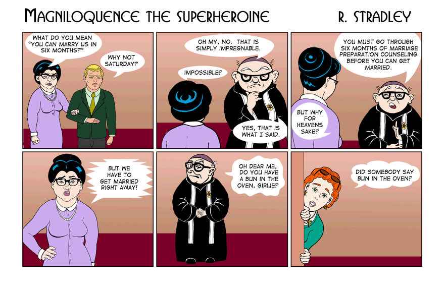 © 2013-2020. Magniloquence TM the Superheroine is written and illustrated by Robert Stradley, Characters and elements of Magniloquence are TM and © 2013-2020 Robert Stradley. All rights reserved. Graphic novels are published by Twisted Tail Productions PO box 9778 Wichita Falls, Texas, USA 76308. All names, characters, places, and events are fictitious and are meant to be treated as such. Any resemblance to actual persons past, present, or future is entirely coincidental. Any tongue-in-cheek reference to existing comics is purely intentional and readers are encouraged to ferret them out. If you cannot find any, you need to read more comics. If you can read this, you probably don't need new glasses.