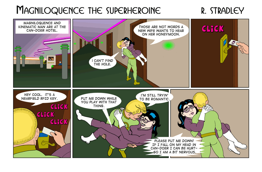 © 2013-2020. Magniloquence TM the Superheroine is written and illustrated by Robert Stradley, Characters and elements of Magniloquence are TM and © 2013-2020 Robert Stradley. All rights reserved. Graphic novels are published by Twisted Tail Productions PO box 9778 Wichita Falls, Texas, USA 76308. All names, characters, places, and events are fictitious and are meant to be treated as such. Any resemblance to actual persons past, present, or future is entirely coincidental. Any tongue-in-cheek reference to existing comics is purely intentional and readers are encouraged to ferret them out. If you cannot find any, you need to read more comics. If you can read this, you probably don't need new glasses.