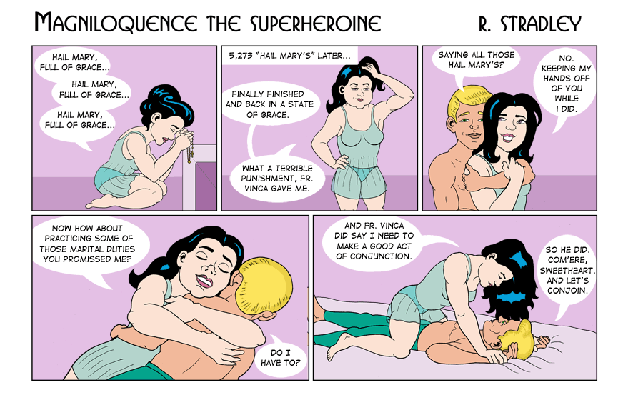 © 2013-2020. Magniloquence TM the Superheroine is written and illustrated by Robert Stradley, Characters and elements of Magniloquence are TM and © 2013-2020 Robert Stradley. All rights reserved. Graphic novels are published by Twisted Tail Productions PO box 9778 Wichita Falls, Texas, USA 76308. All names, characters, places, and events are fictitious and are meant to be treated as such. Any resemblance to actual persons past, present, or future is entirely coincidental. Any tongue-in-cheek reference to existing comics is purely intentional and readers are encouraged to ferret them out. If you cannot find any, you need to read more comics. If you can read this, you probably don't need new glasses.