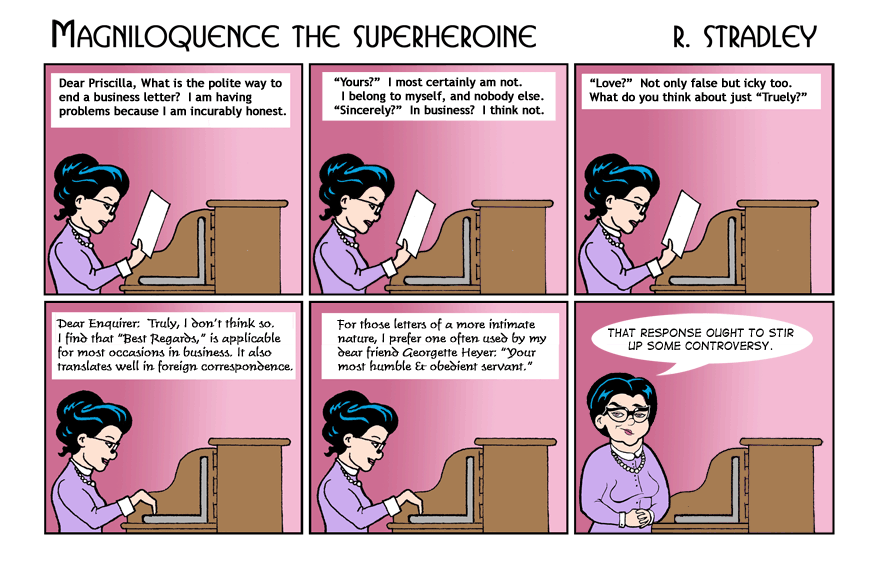 Priscilla stirs up controversay about signing letters. -- Robert Stradley, the Weekend Artist. |