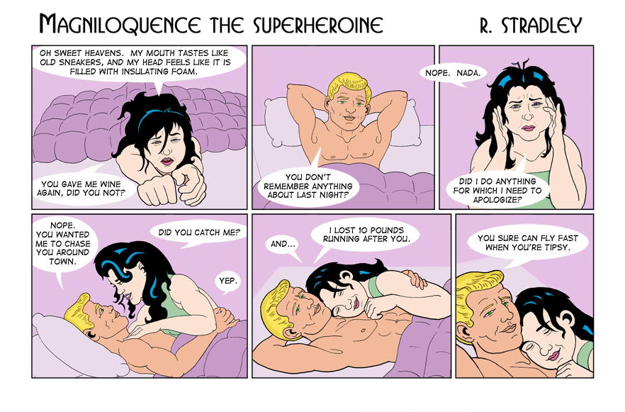 © 2013-2020. Magniloquence TM the Superheroine is written and illustrated by Robert Stradley, Characters and elements of Magniloquence are TM and © 2013-2020 Robert Stradley. All rights reserved. Graphic novels are published by Twisted Tail Productions PO box 9778 Wichita Falls, Texas, USA 76308. All names, characters, places, and events are fictitious and are meant to be treated as such. Any resemblance to actual persons past, present, or future is entirely coincidental. Any tongue-in-cheek reference to existing comics is purely intentional and readers are encouraged to ferret them out. If you cannot find any, you need to read more comics. If you can read this, you probably don't need new glasses.
