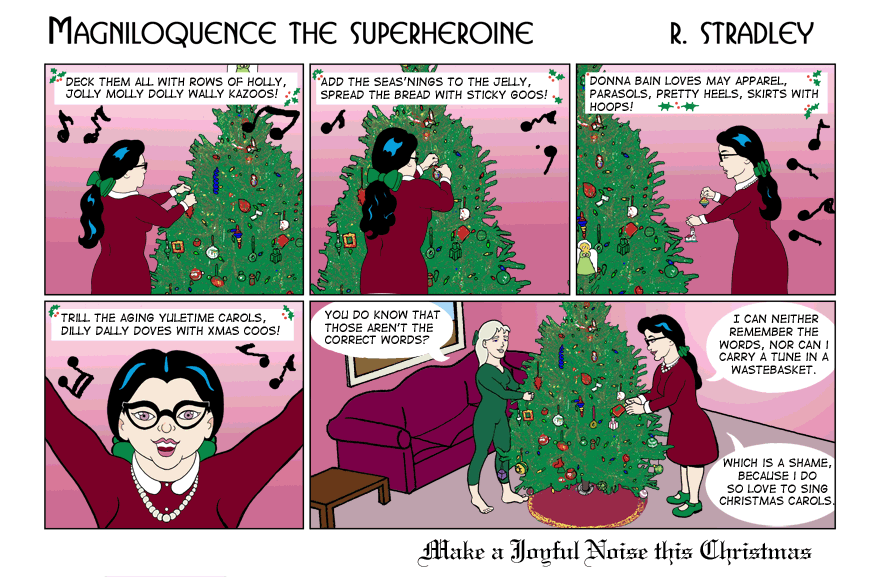 We interrupt this storyline to bring you the following Holiday Interludes . Welcome to the Christmas holidays, Magniloquence style. Be sure to see all the holiday comics: 1300-1340 -- Robert Stradley, the Weekend Artist. |