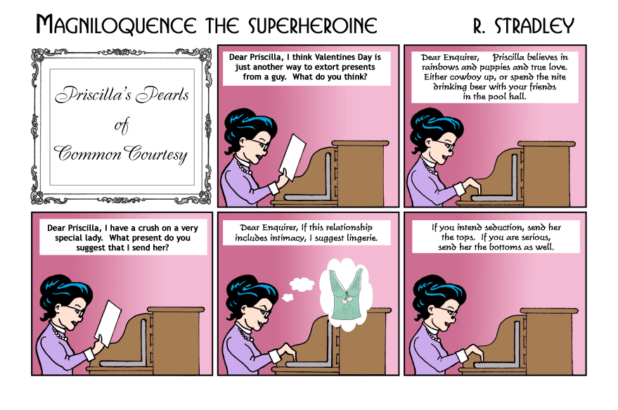 Priscilla obviously has lingerie on her mind on this Valentine's Day. -- Robert Stradley, the Weekend Artist. |