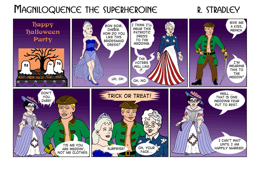 © 2013-2020. Magniloquence TM the Superheroine is written and illustrated by Robert Stradley, Characters and elements of Magniloquence are TM and © 2013-2020 Robert Stradley. All rights reserved. Graphic novels are published by Twisted Tail Productions PO box 9778 Wichita Falls, Texas, USA 76308. All names, characters, places, and events are fictitious and are meant to be treated as such. Any resemblance to actual persons past, present, or future is entirely coincidental. Any tongue-in-cheek reference to existing comics is purely intentional and readers are encouraged to ferret them out. If you cannot find any, you need to read more comics. If you can read this, you probably don't need new glasses.