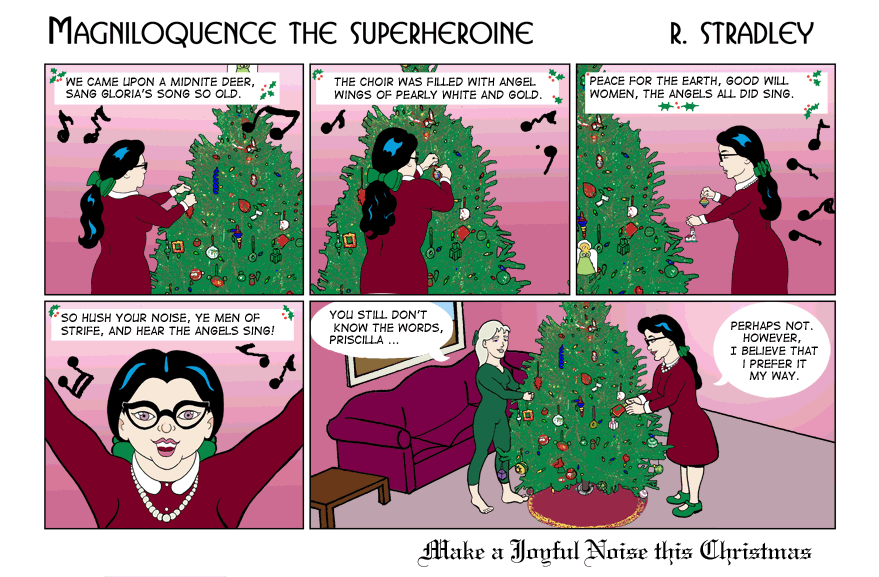 Priscilla starts off the xmas season decorating her tree and singing songs her way.. -- Robert Stradley, the Weekend Artist. |