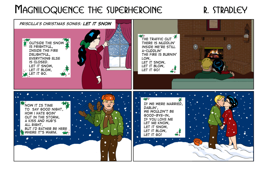 Priscilla continues her renditions of favorite Christmas songs: Let It Snow. -- Robert Stradley, the Weekend Artist. |