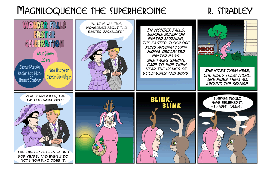 Madame Mayor, the Wonder Falls Easter Jackalope, meets the real Easter Jackalope with surprising results. . -- Robert Stradley, the Weekend Artist. |