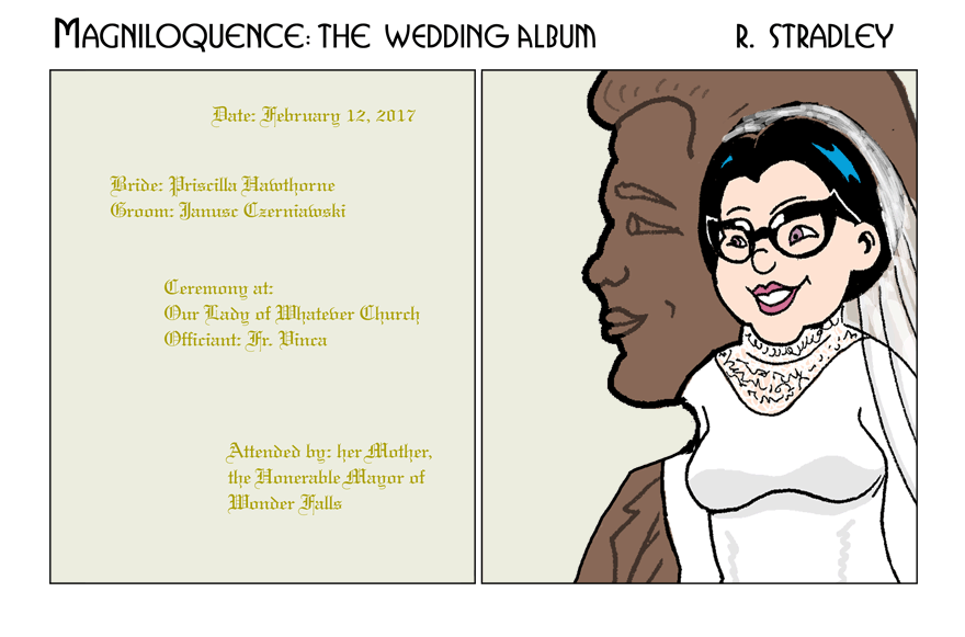 © 2013-2020. Magniloquence the SuperheroineTM is written and illustrated by Robert Stradley, Characters and elements of Magniloquence are TM and © 2013-2020 Robert Stradley. All rights reserved. Graphic novels are published by Twisted Tail Productions PO box 9778 Wichita Falls, Texas, USA 76308. All names, characters, places, and events are fictitious and are meant to be treated as such. Any resemblance to actual persons past, present, or future is entirely coincidental. Any tongue-in-cheek reference to existing comics is purely intentional and readers are encouraged to ferret them out. If you cannot find any, you need to read more comics. If you can read this, you probably don't need new glasses.