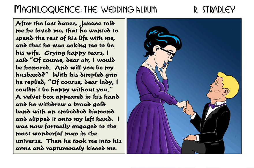 Janusc proposes to Priscilla. For the full proposal see comic # 98. -- Robert Stradley, the Weekend Artist. |