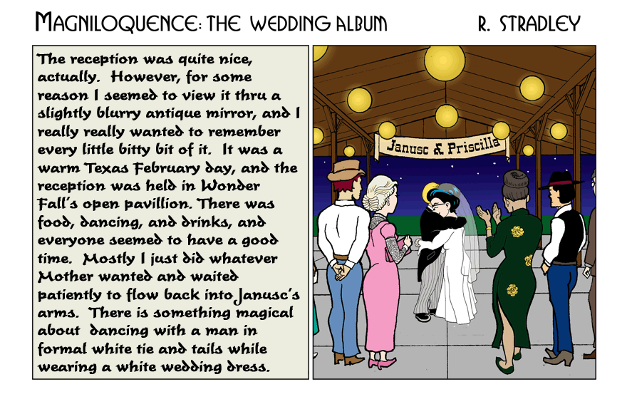 © 2013-2020. Magniloquence the SuperheroineTM is written and illustrated by Robert Stradley, Characters and elements of Magniloquence are TM and © 2013-2020 Robert Stradley. All rights reserved. Graphic novels are published by Twisted Tail Productions PO box 9778 Wichita Falls, Texas, USA 76308. All names, characters, places, and events are fictitious and are meant to be treated as such. Any resemblance to actual persons past, present, or future is entirely coincidental. Any tongue-in-cheek reference to existing comics is purely intentional and readers are encouraged to ferret them out. If you cannot find any, you need to read more comics. If you can read this, you probably don't need new glasses.
